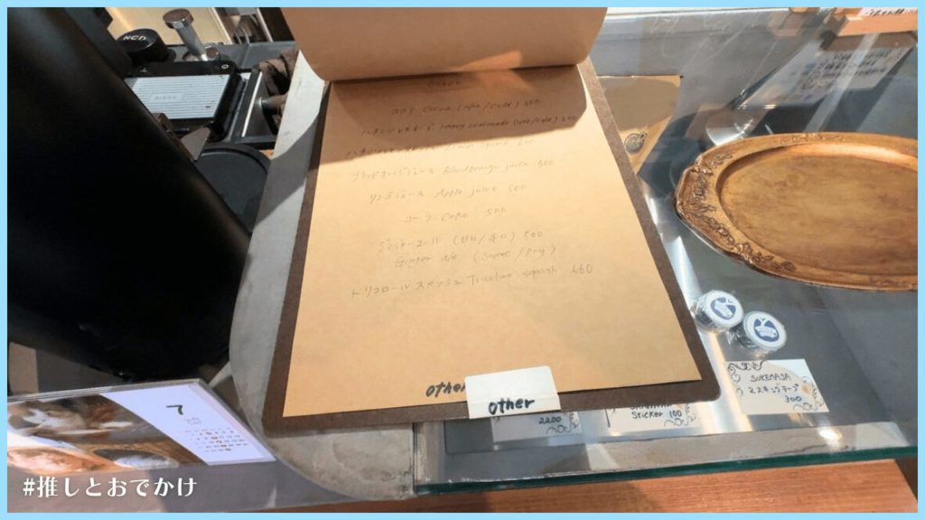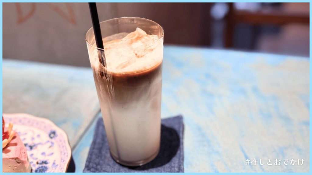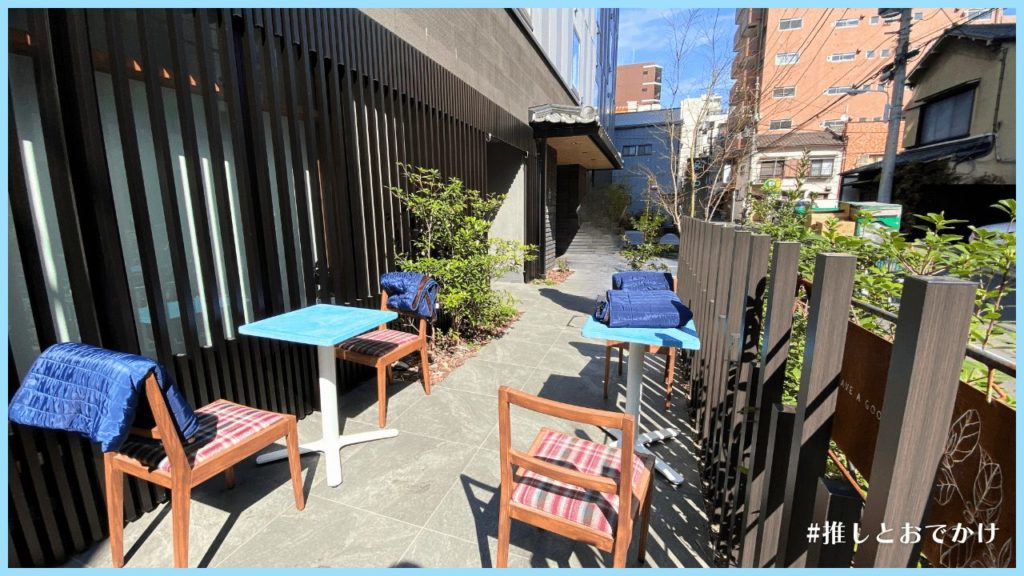 外のテラス席では、草花に囲まれてゆったりスイーツとコーヒーが楽しめ、アクスタや小物を添えて撮影している方もちらほら見かけました。