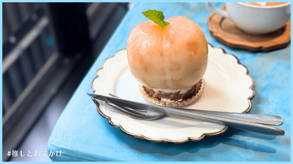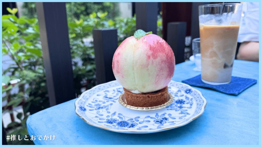 桃をまるごと使った芸術スイーツ、藍の世界でひと息