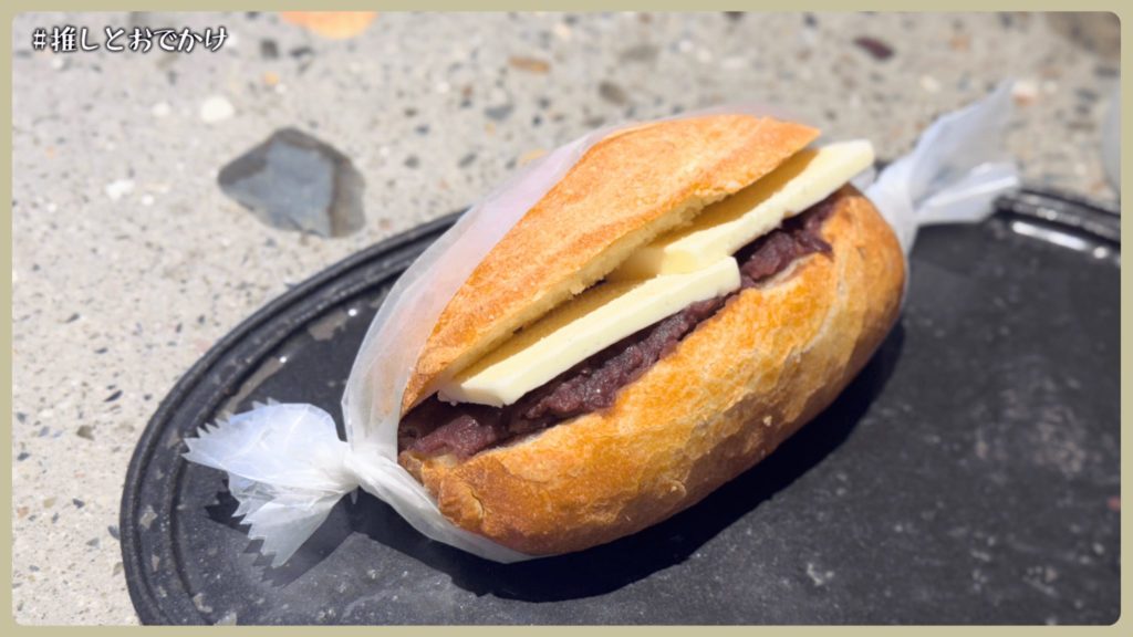香ばしいバゲットに、たっぷりの粒あんと厚切りバター。