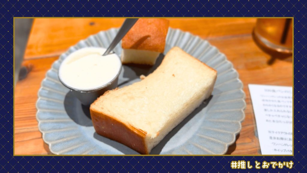 自家製のホイップバターが添えられたトーストは、外は軽く香ばしく中はしっとり。
